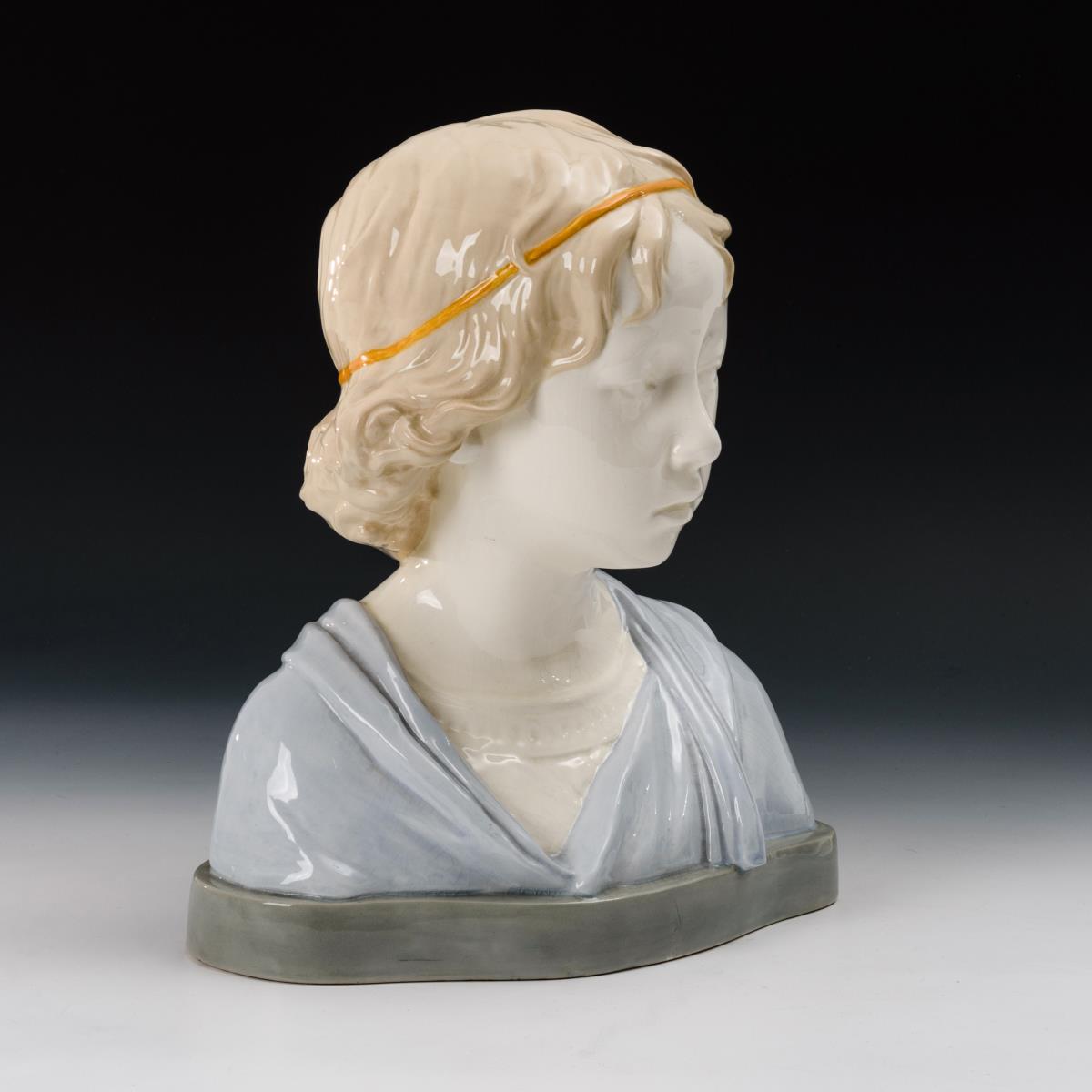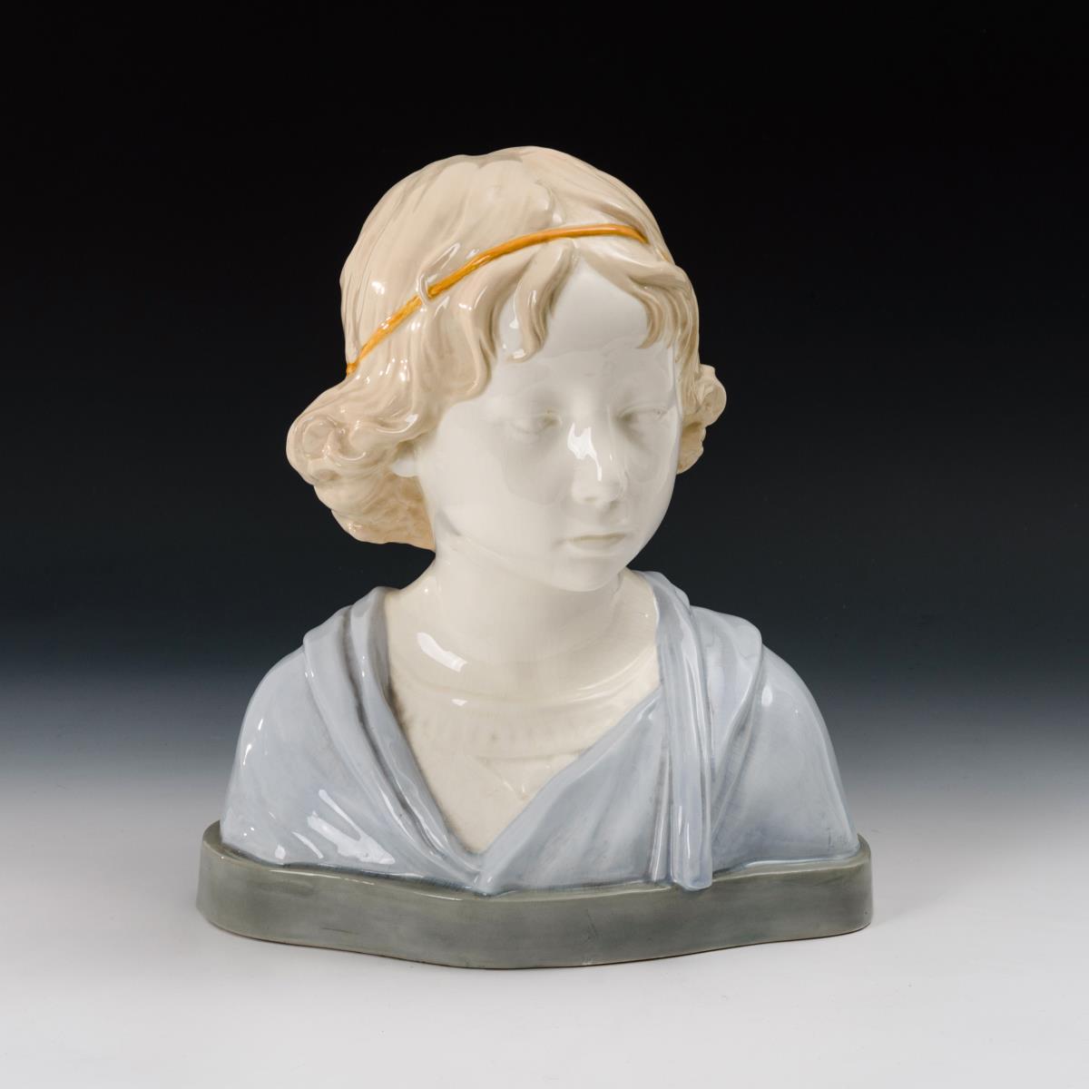 Büste eines Mädchens mit gelbem Haarband. Kleine Bestoßung am Sockel.