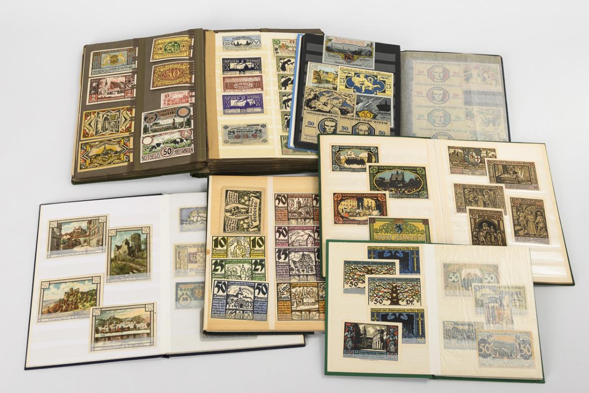 1914 bis 1920er Jahre. 1 großes "Notgeld-Sammelalbum" D.R.G.M.", sonst jüngere Alben.