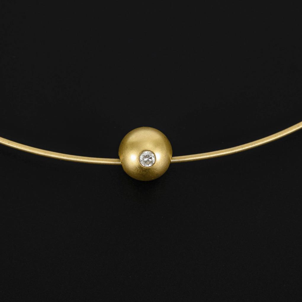 Mattierter Kugelanhänger mit Brillant an Collierreif. Steckschließe.