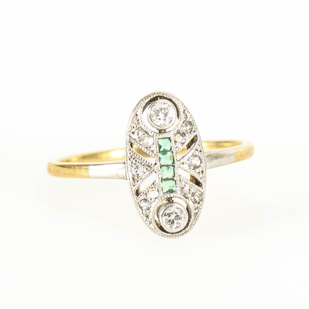 Art-déco-Ring mit Smaragden und Altschliff-Diamanten.