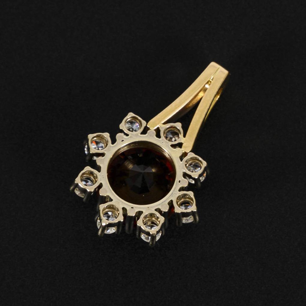 Krappengefasster Citrin, umringt von 8 chatongefassten Brillanten, an starrer Öse.