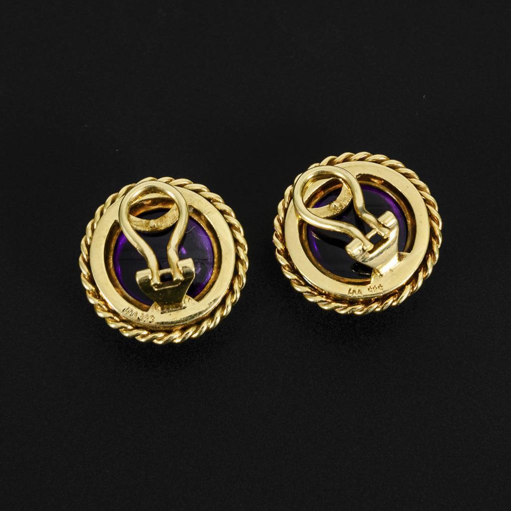 Gelbgold 585 gestempelt. Amethyst Ø 15 mm. Ohrklipp Ø 1,85 cm. 12,4 g.