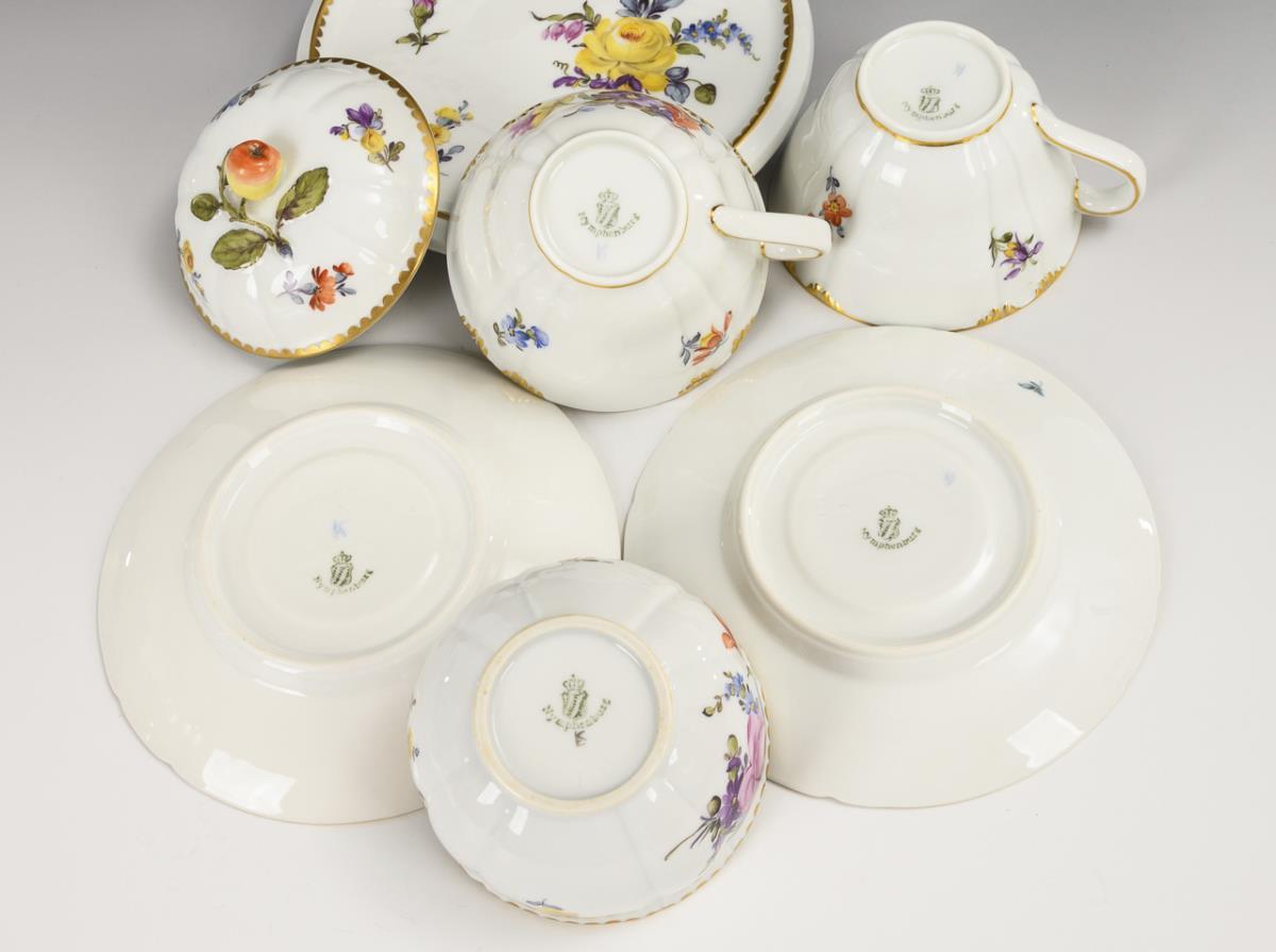 9 Teile eines Teeservice mit Blumenmalerei. Nymphenburg.