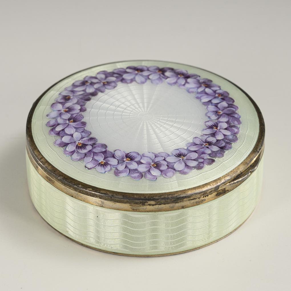 Emailliertes Silberdöschen mit Veilchenkranz.