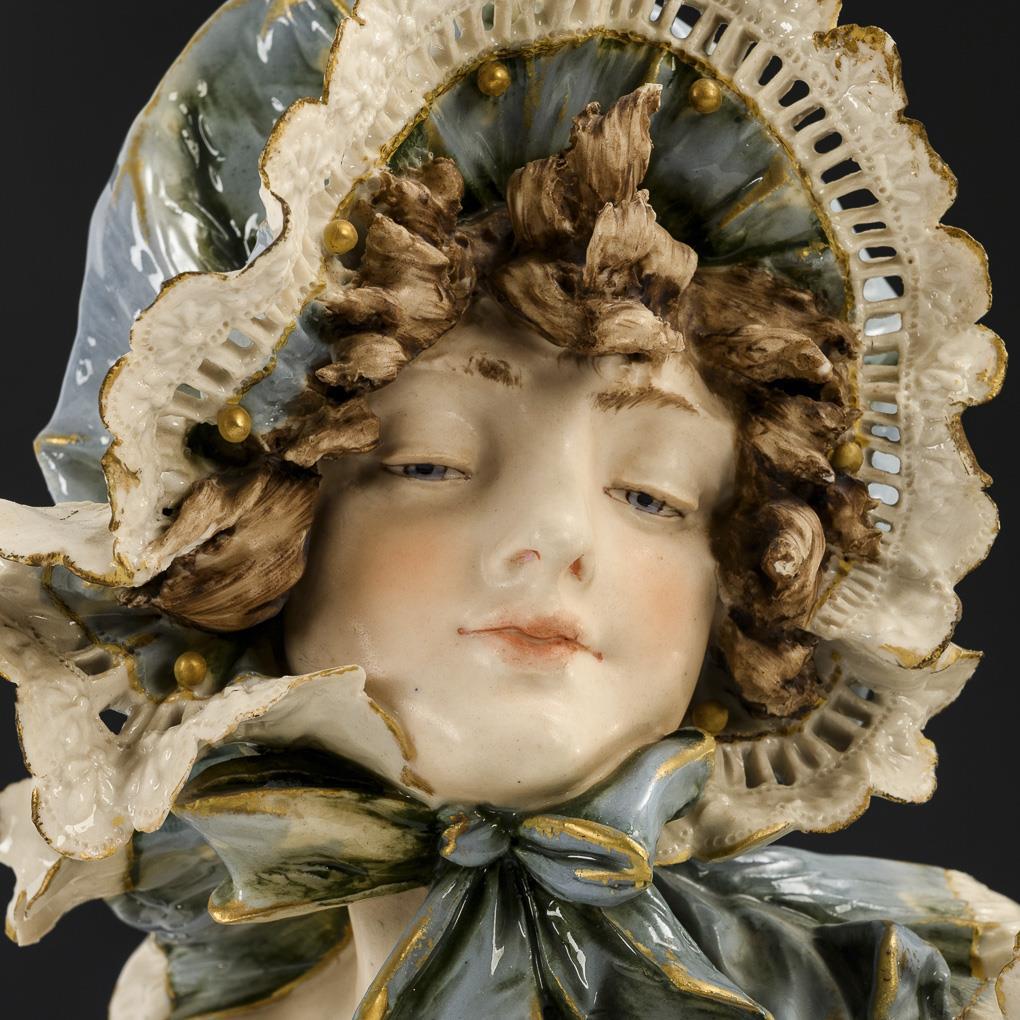 Jugendstil-Damenbüste mit Haube. Riessner, Stellmacher & Kessel.