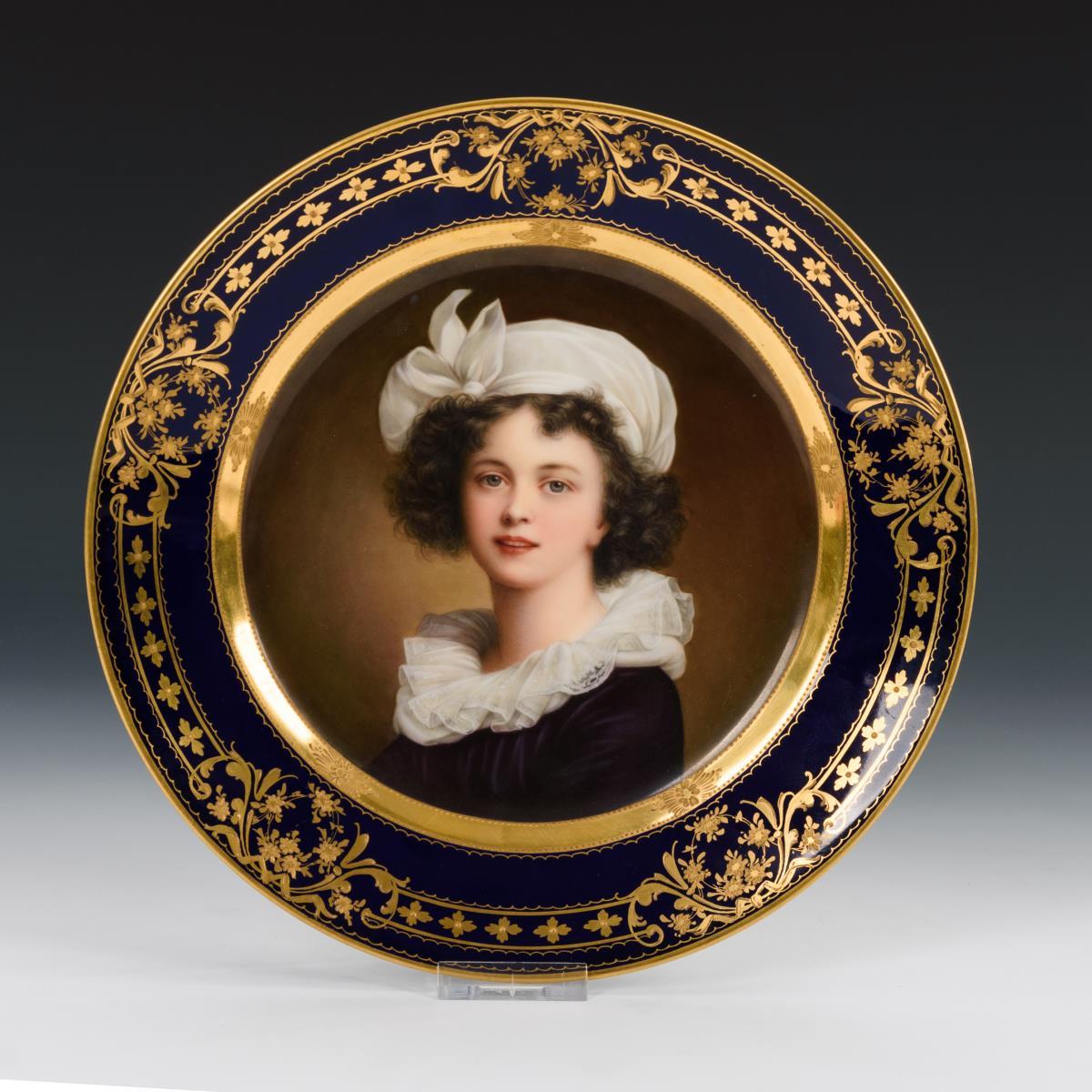 Kobaltblauer Teilfond, florale Reliefgoldmalerei, polychrome Malerei. Ø 24,5 cm.