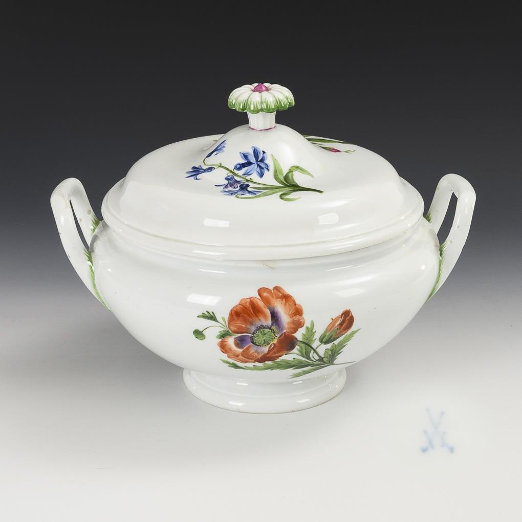 Biedermeier-Terrine mit Blumenmalerei. Meissen.