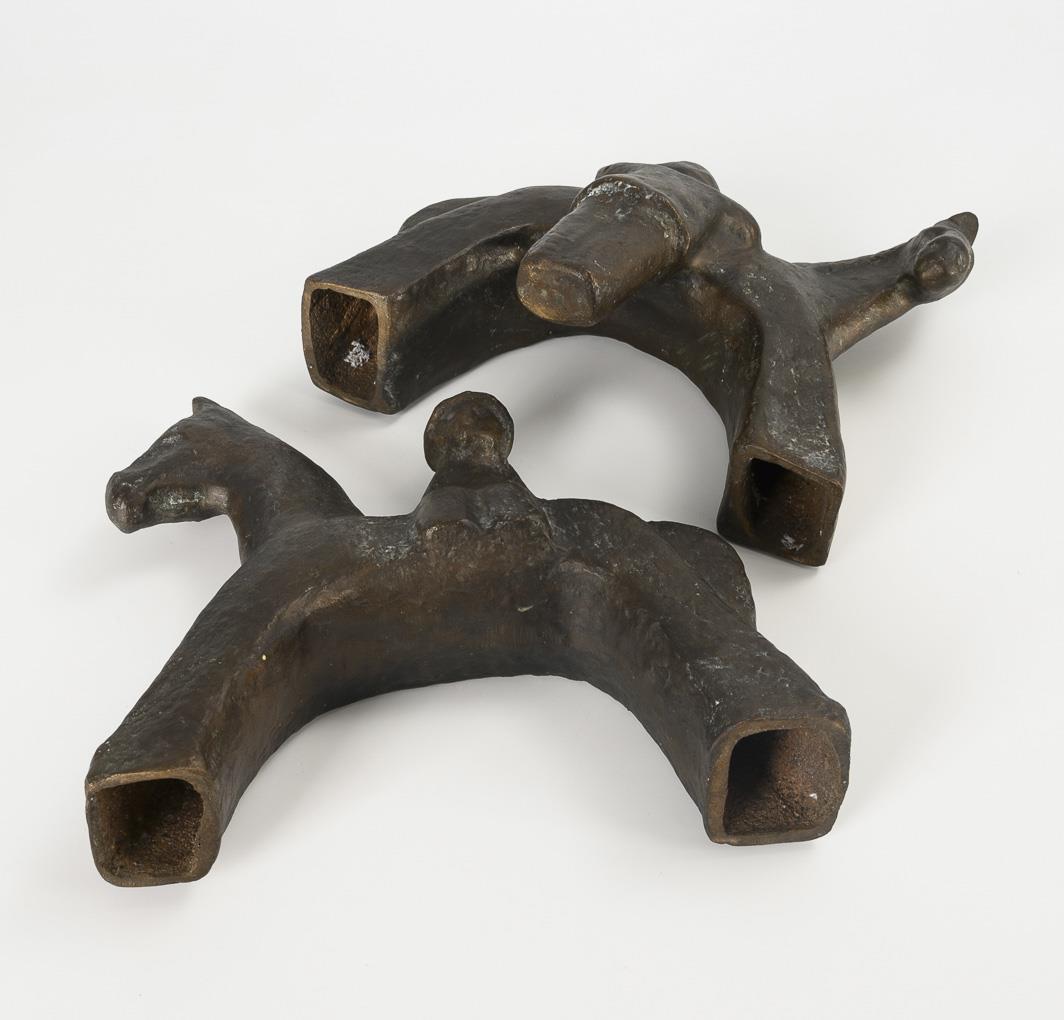 Abstrahierend geformte Pferde mit Reiter bzw. angelehnt Stehendem.