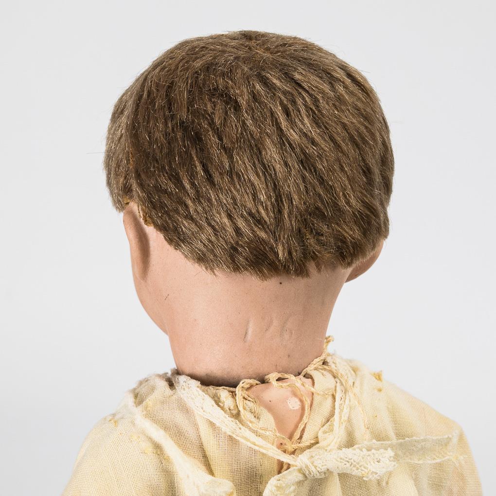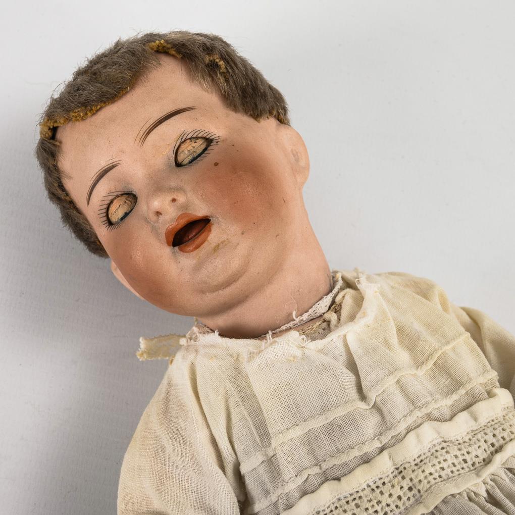Defektes Charakterbaby in Flechtsessel. Kämmer & Reinhardt.