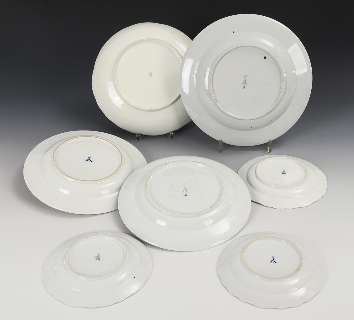 1 Schale und 6 Teller mit Blumenmalerei. Meissen.