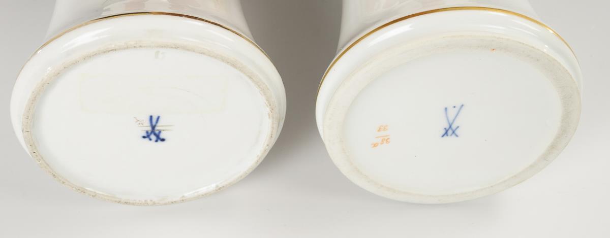 2 Flötenvasen und 1 Fächerplatte mit Blumenmalerei. Meissen.
