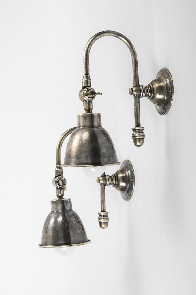 Zeitlos klassisches Design mit runder Wandhalterung und gebogenem Arm sowie schwenkbarer Metall-Glockenschirm mit Flügelmutter-Arretierung . Neu elektrifiziert.