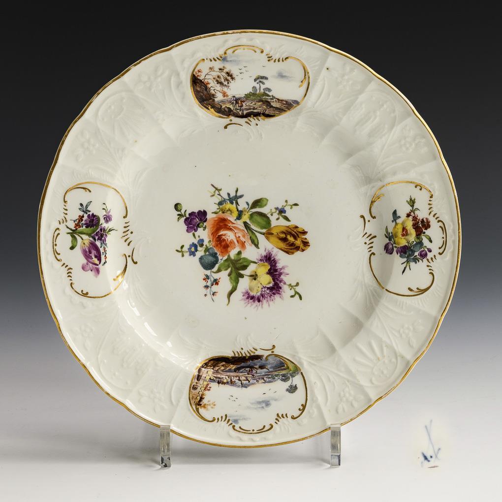 Barocker Teller mit Blumen- und Landschaftsmalerei. Meissen.