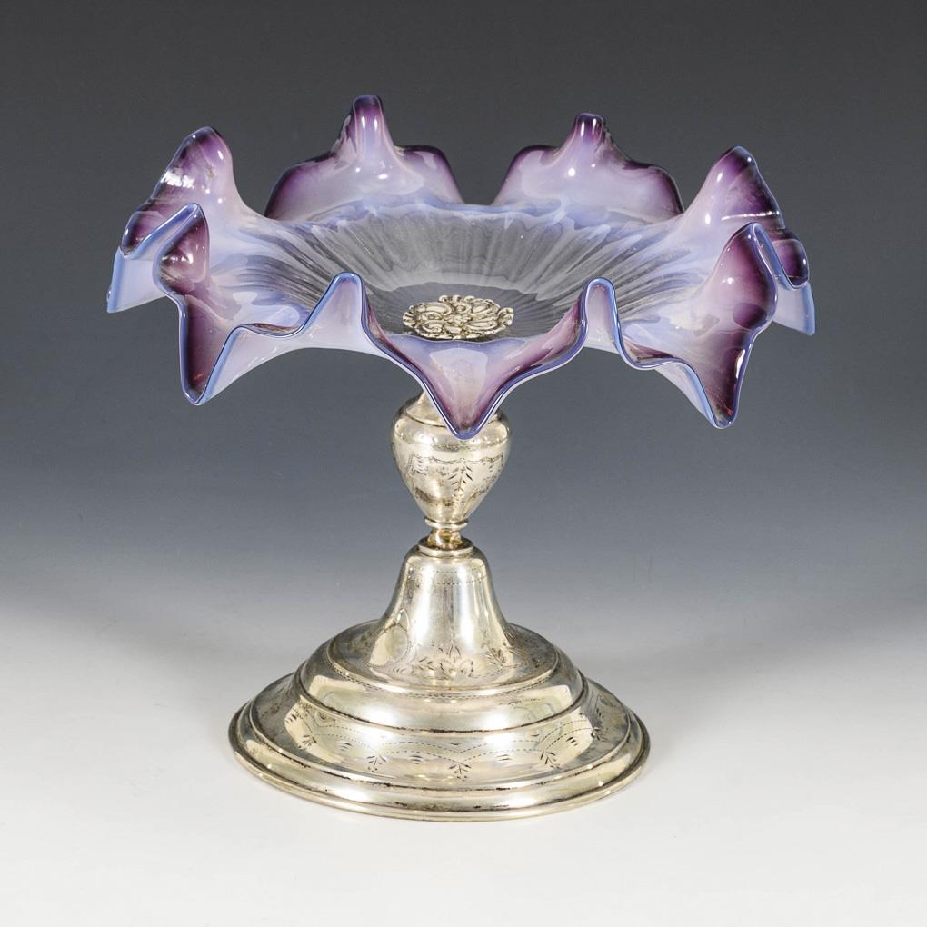 Silberner Tafelaufsatz mit Glasschale.