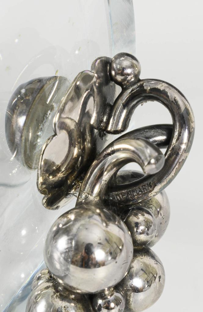 Dickwandiger Glaskübel mit traubenförmigen Handhaben aus Silber. Glas unterseitig undeutlich signiert.
