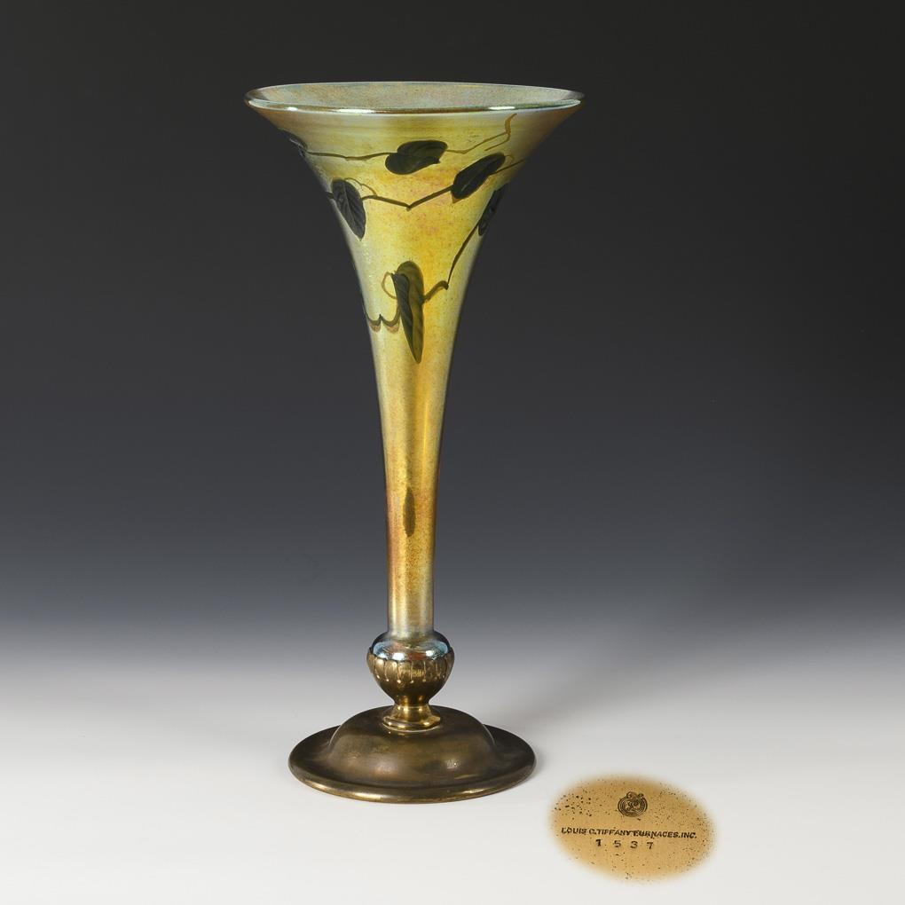 Jugendstil-Vase mit Bronzefuß | siehe Nachtrag. Tiffany.