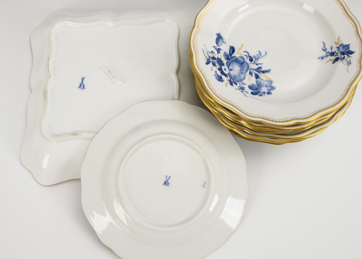 29 Teile eines Speiseservice mit Blaumalerei. Meissen.