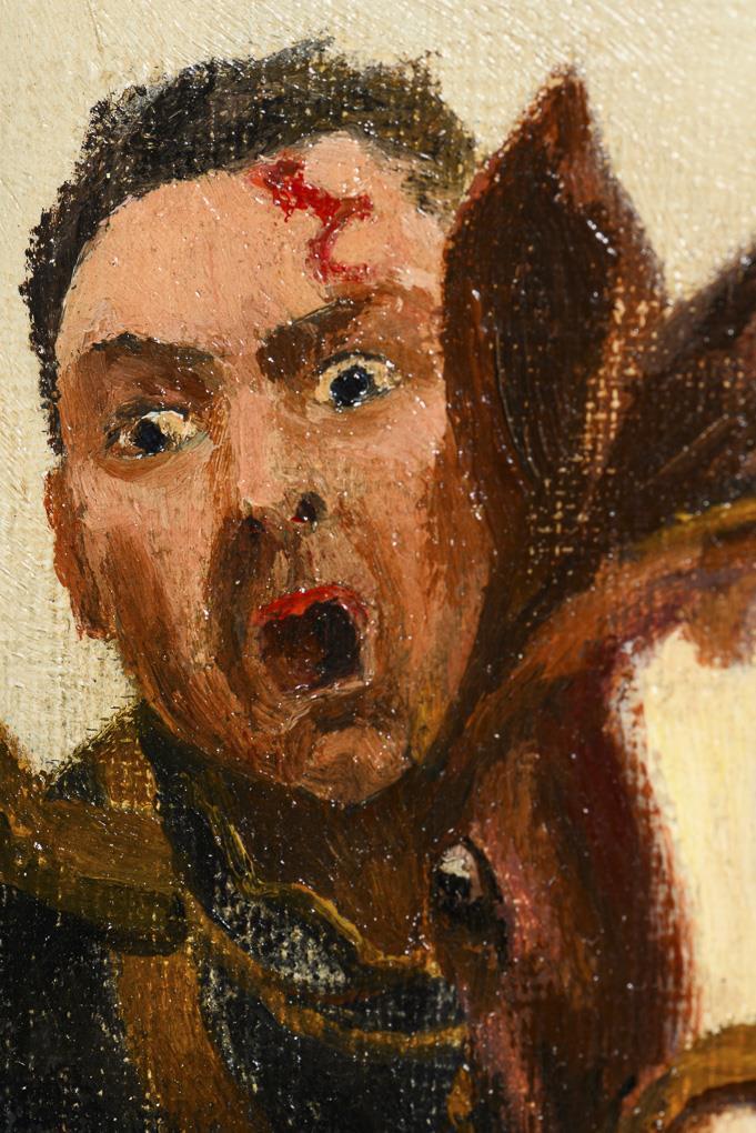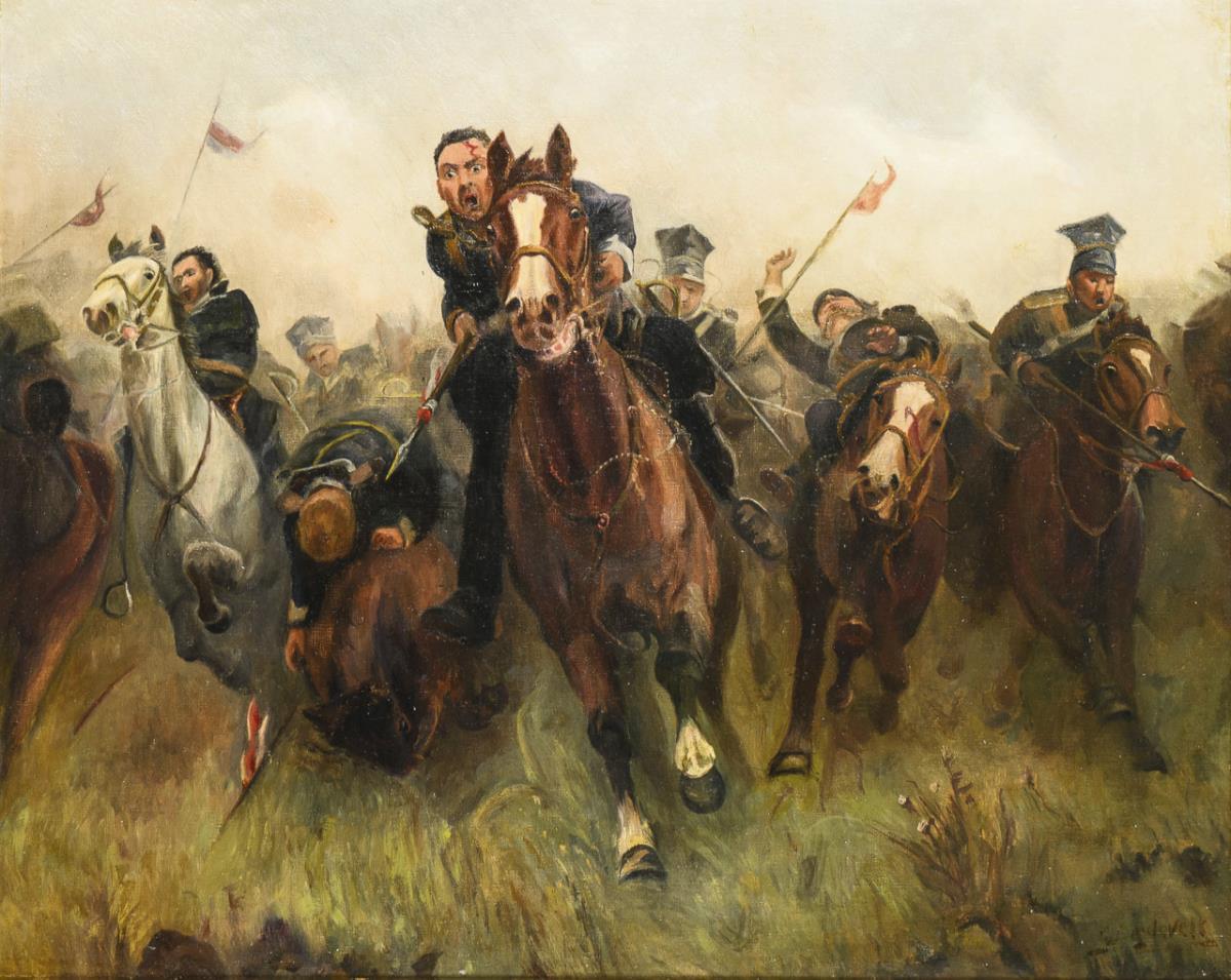 Sie befinden sich hier: Startseite Kategorien Gemälde Undeutlich signiert: Reitende Kavallerie in der Schlacht am 11.10.1916