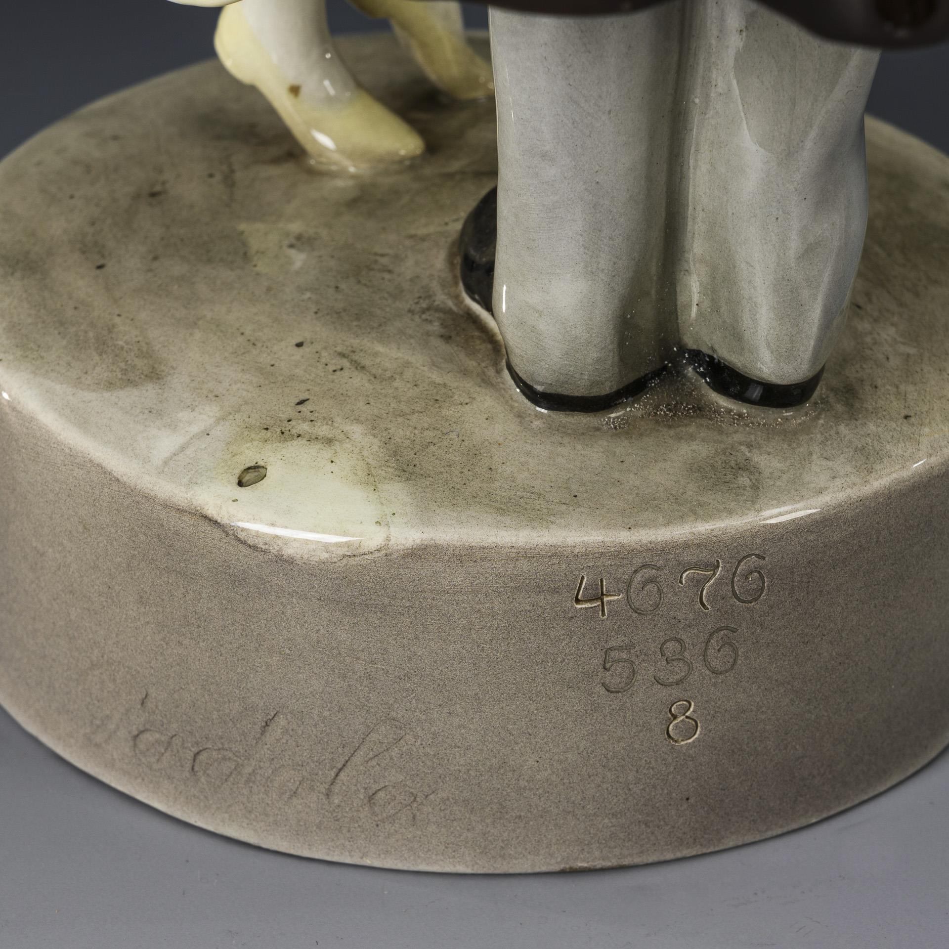 Violinspieler im Biedermeier-Gewand, mit einem kleinen Mädchen tanzend, auf Rundsockel. Knauf restauriert.