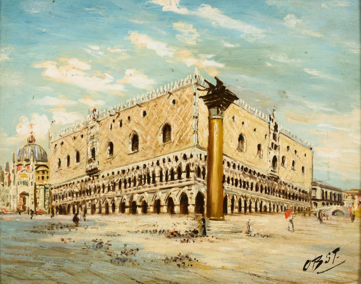 Flott gemalte Ansicht mit dem Palast und San Marco. Kaum Altersspuren.
