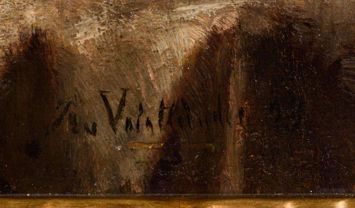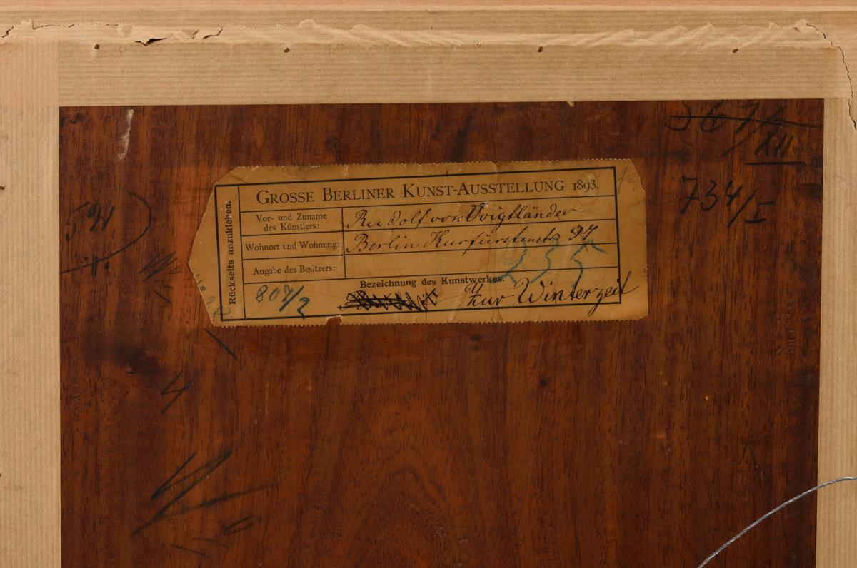 Öl/Mahagoni. Rechts unten signiert, verso auf dem Etikett "Grosse Berliner Kunst-Ausstellung 1893" bezeichnet/betitelt.