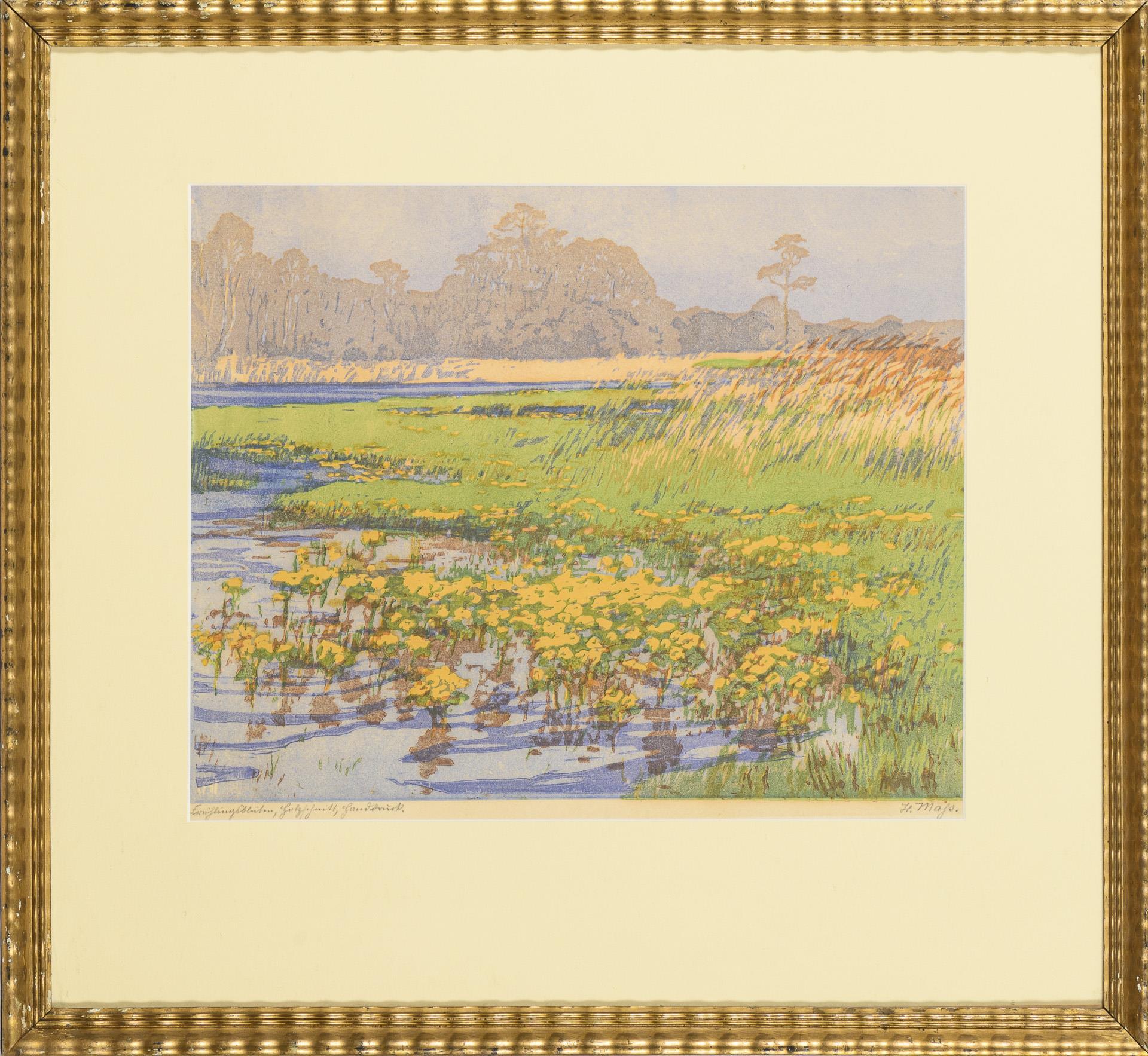 Jugendstil Seelandschaft. Rückseitenverglasung gesprungen.