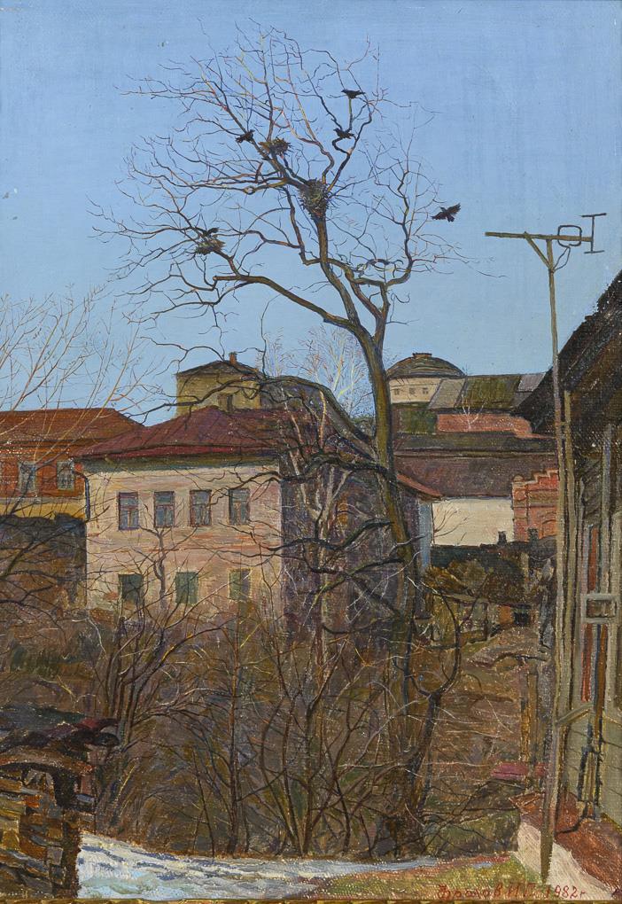 Öl/Leinwand. Rechts unten kyrillisch signiert, verso kyrillisch bezeichnet/betitelt. 1982.