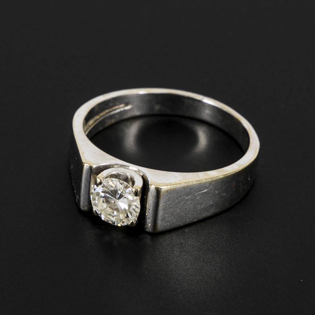 Weißgold 750 gestempelt. Brillant Ø ca. 5,5 mm. Weiß/gute Reinheit. Ringgröße 62. 6,8 g.