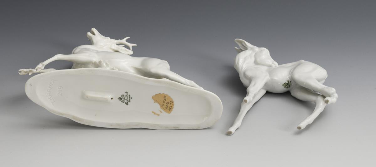 1x Rehbock, Modell-Nr. B 249, Entwurf um 1924/25 von Theodor Kärner (1884-1966), bezeichnet (H 16 cm). / 1x Rehkitz, ohne Modell-Nr., Entwurf 1938 von Willi Münch-Khe (1885-1960), bezeichnet (H 14,5 cm).