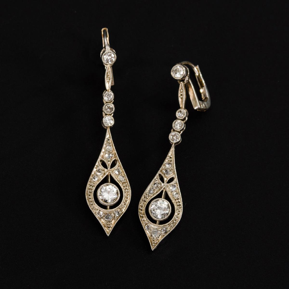 Art-déco-Ohrhängerpaar mit Altschliff-Diamanten.