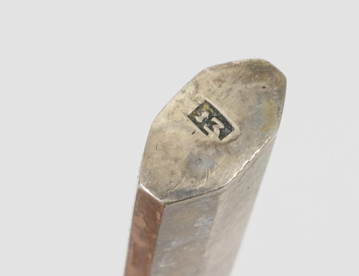 Kleine Messer mit schmalem Reliefband am facettierten Silbergriff. In roter Schatulle. Klingen rostig.