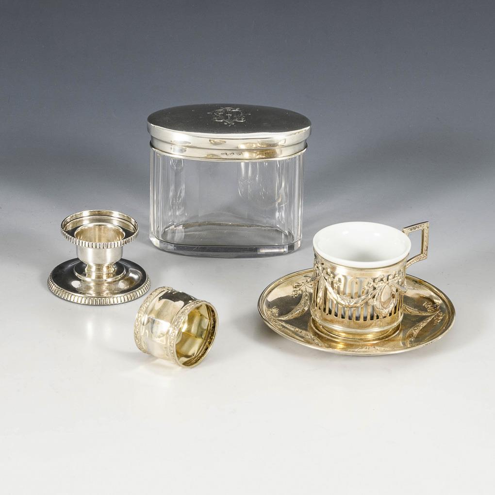 Sie befinden sich hier: Startseite Kategorien Silber Konvolut 4 Teile Silber: Tässchen, Leuchter, Serviettenring und Dose mit Silberdeckel