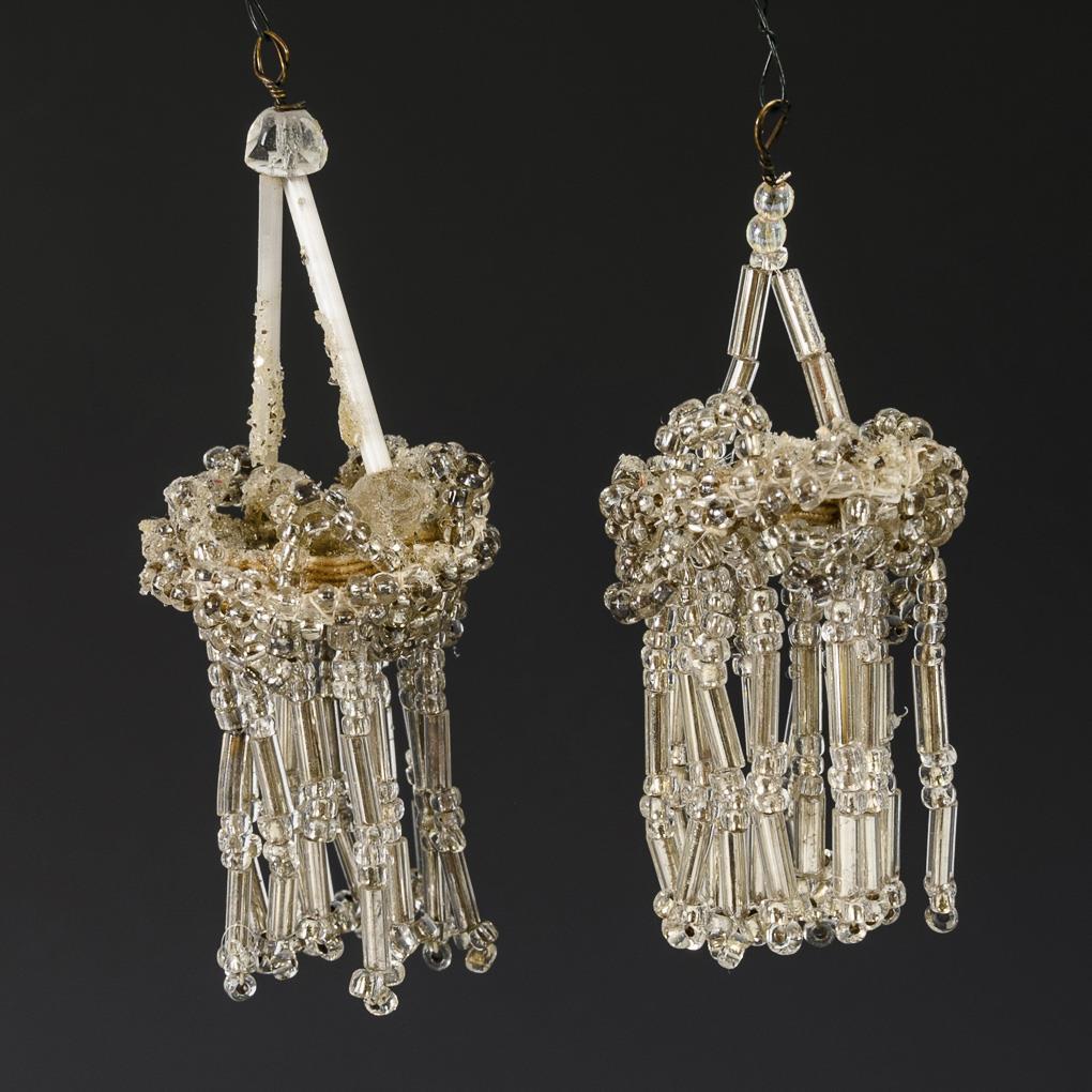 19 Teile Baumschmuck in Gablonzer Art, aus silberfarbenen Glasperlen und Stäbchen gefertigt.