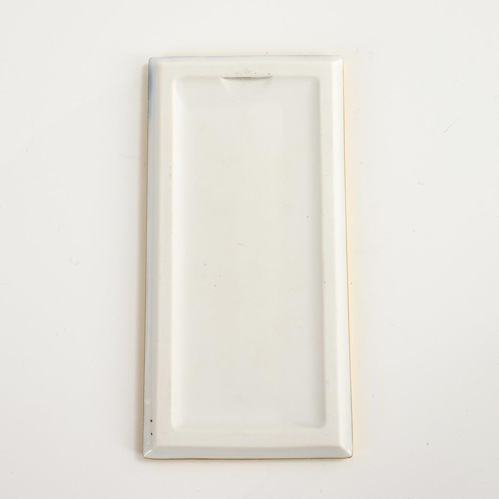 Unterglasurblaue Malerei, Aufglasurmalerei in Rot und Grün, Goldstaffage. 14 x 7 cm.