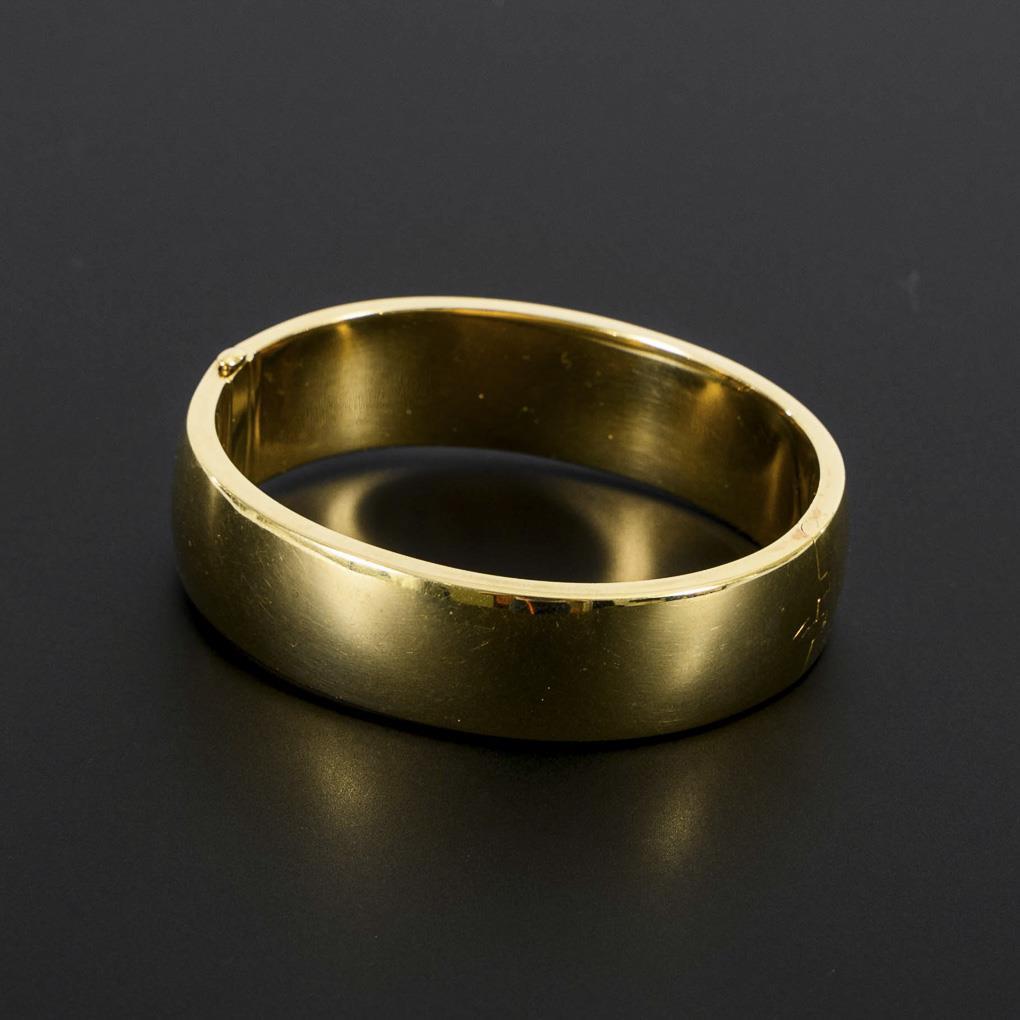 Gelbgold 585 gestempelt. Ø 5,8 cm. Breite 1,6 cm. 47,5 g.