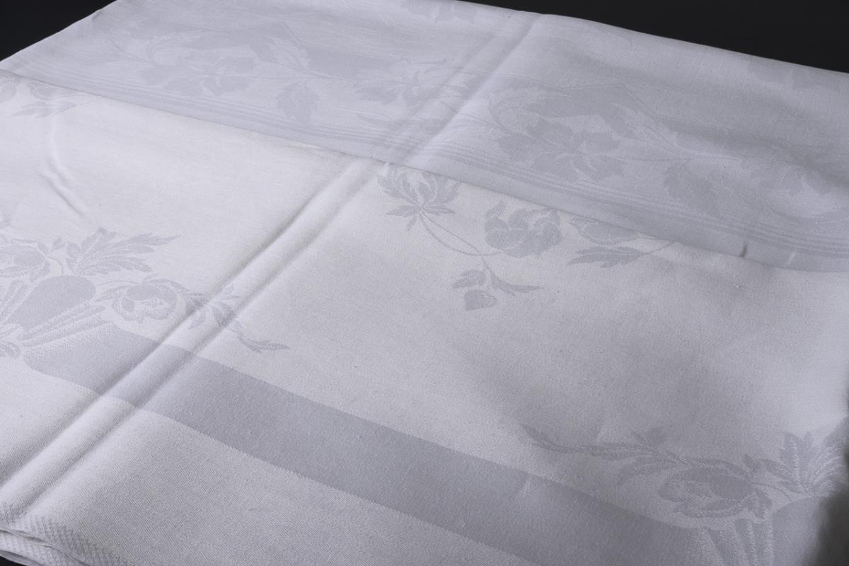 Leinendamast. 295 x 148/295 x 148 cm.