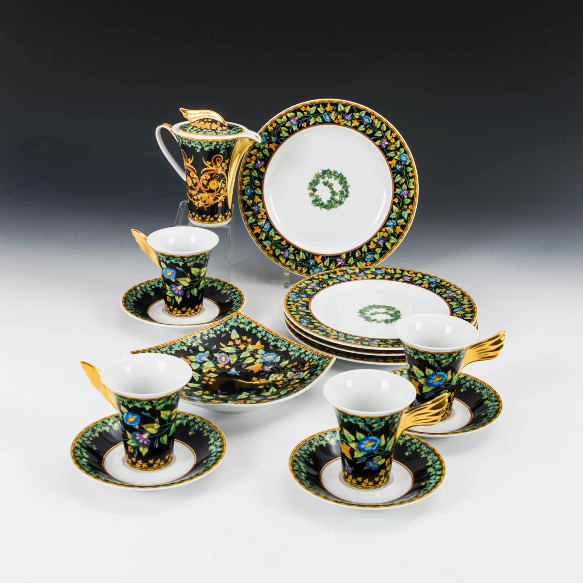 14 Teile eines Kaffeeservice "Versace Gold Ivy". Rosenthal.