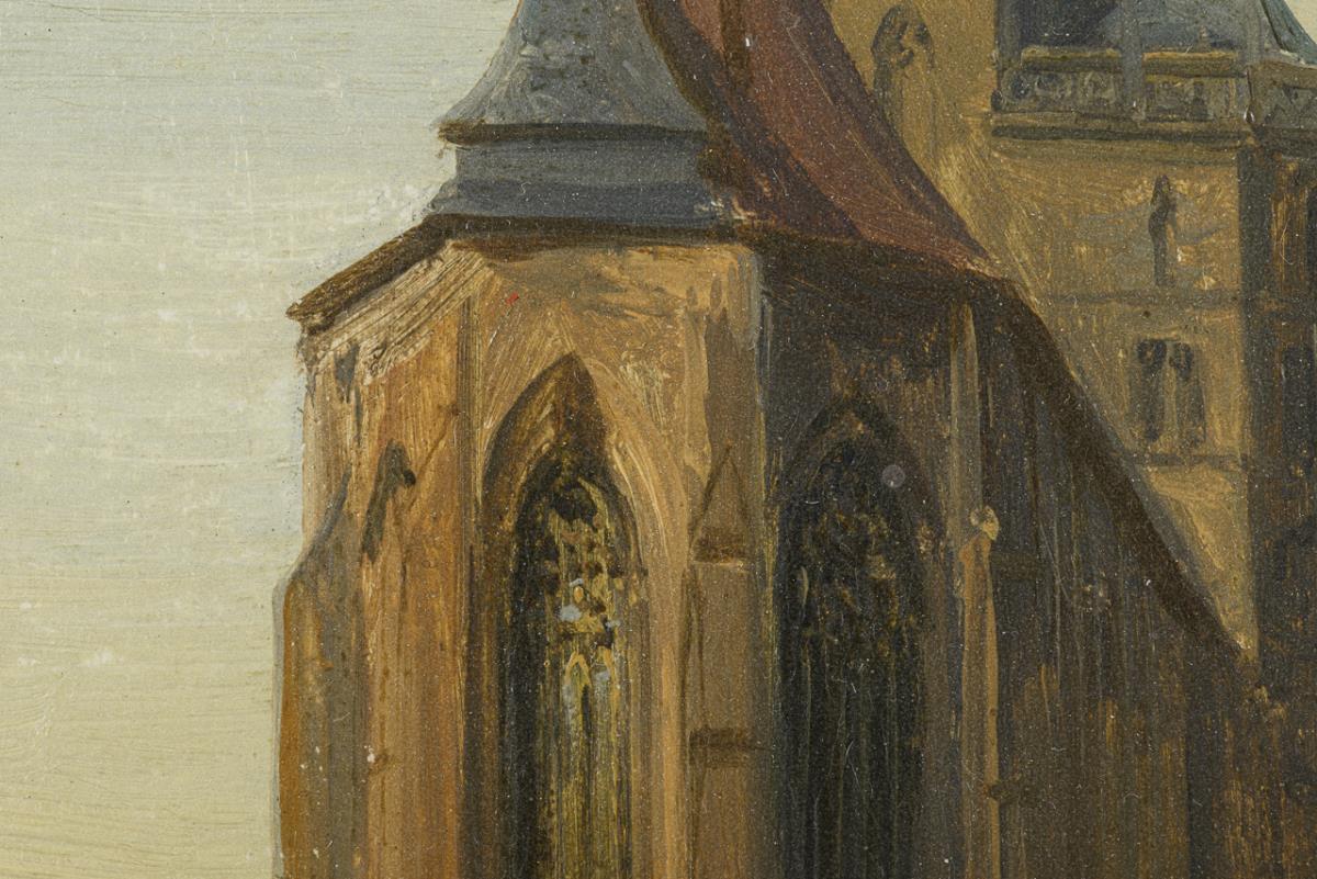 Wohl Vorstudie zum größeren Bild "Am Dom zu Erfurt" von 1848, welches heute im Landesmuseum Hannover zu sehen ist.