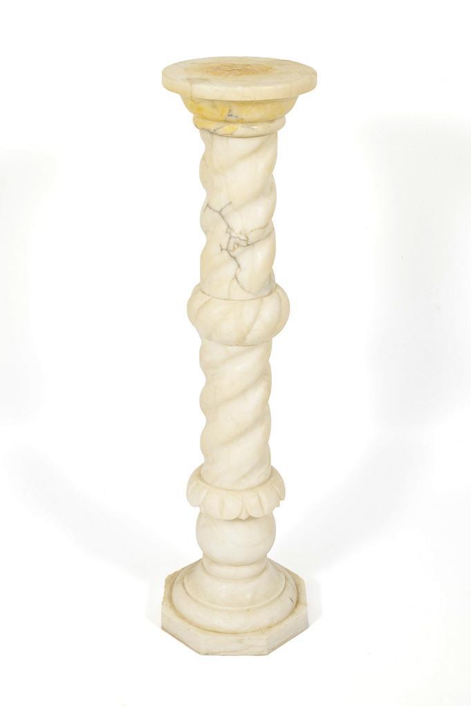 Weißer Alabaster, leicht geädert. H 104 cm, Ø Deckplatte 25 cm.
