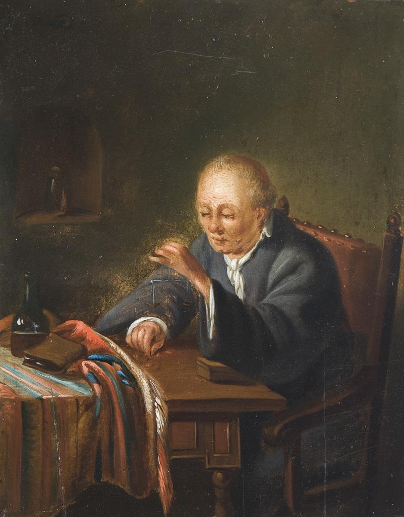 Sie befinden sich hier: Startseite Kategorien Gemälde Pendant: "Ein Gelehrter spitzt seine Feder", "Ein Kaufmann mit Münzwaage"