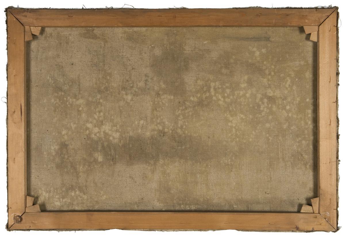 Detailreich und fein gemaltes, üppiges dekoratives Gesamtarrangement mit erlegten Tieren und herbstlichem Gemüse, wie Wirsing, Pilze und Kürbis. Ohne Rahmen. Alt doubliert.