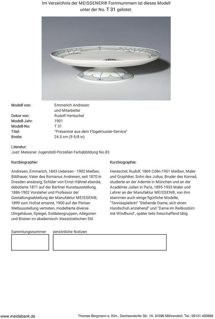 Hentschel: Maler und Grafiker, studierte an der Akademie in München und an der Académie Julian in Paris. 1895-1933 Maler und Lehrer an der Manufaktur Meissen * Partnerauktion Bergmann.