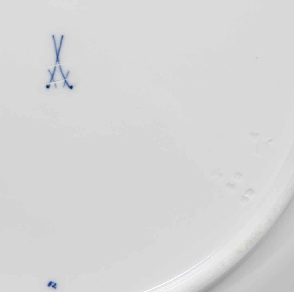 Modell-Jahr: 1901. Seladongrüne und kobaltblaue Unterglasurbemalung, "Flügelmuster", Form "T glatt". Pressmarken, Malermarken, Schwertermarken zweimal gestrichen.