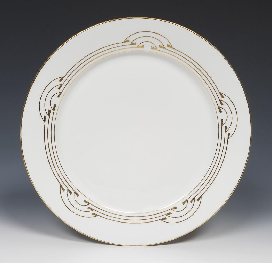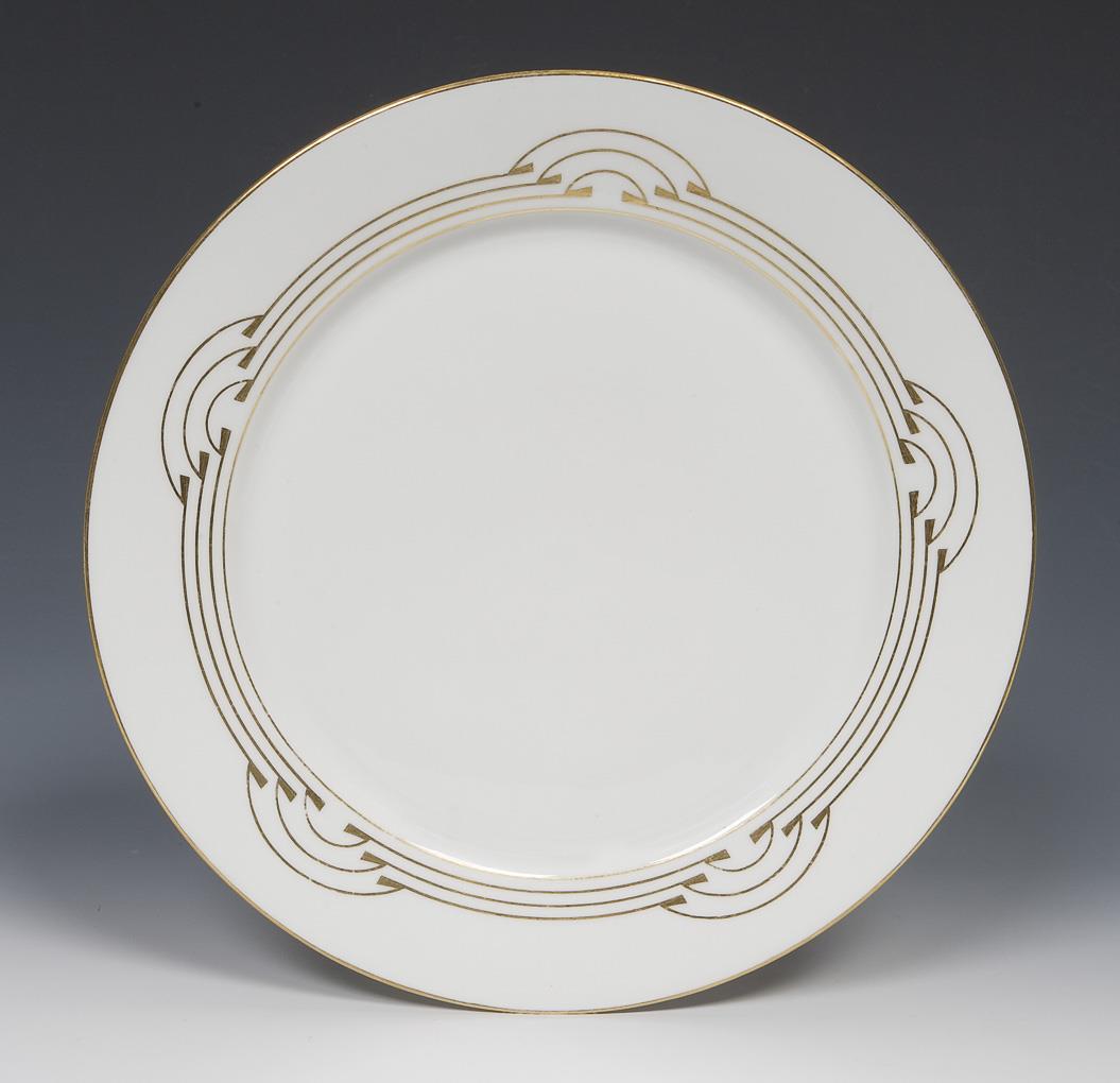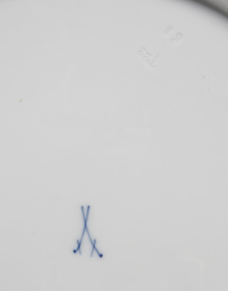 Form-Modell von 1901, Dekor-Modell von 1907. Geometrische Bemalung in Gold, "Bügelservice", Form "T- galtt". Pressmarken, Schwertermarken.
