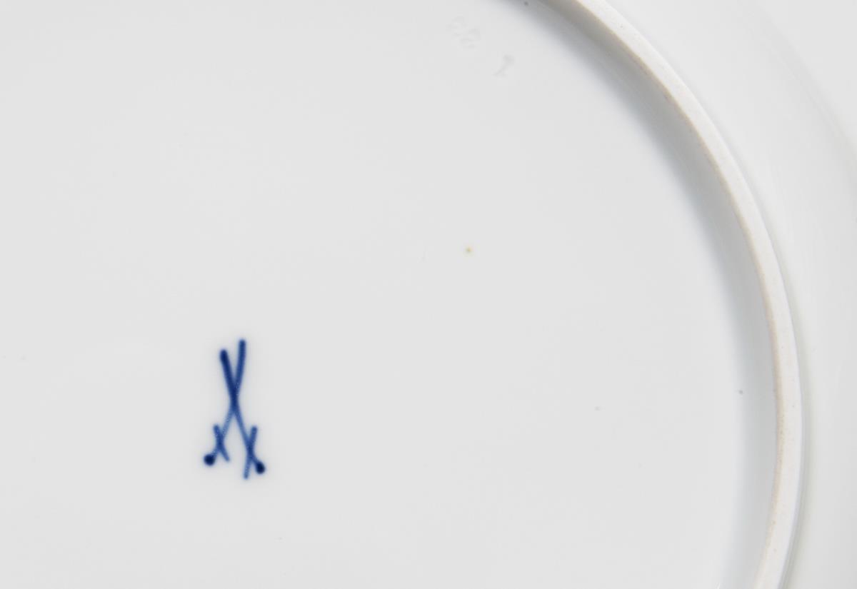 Form-Modell von 1901, Dekor-Modell von 1907. Geometrische Bemalung in Gold, "Bügelservice", Form "T- galtt". Pressmarken, Schwertermarken.