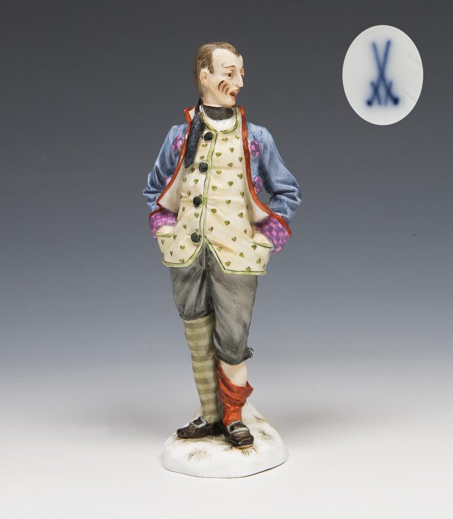 Modell-Jahr: 1899. "Stenterello" aus der "Commedia dell'arte", aus einer Serie von 12 Figuren. Farbig bemalt, Ritzmarke, Pressmarke, Schwertermarke.