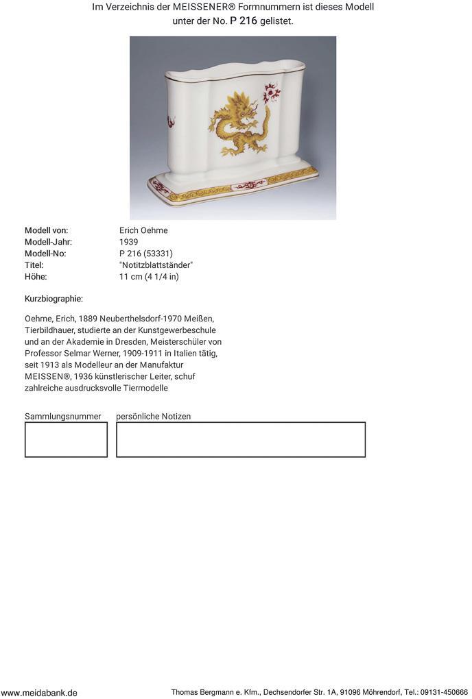Notizblatt- Briefständer. Meissen.