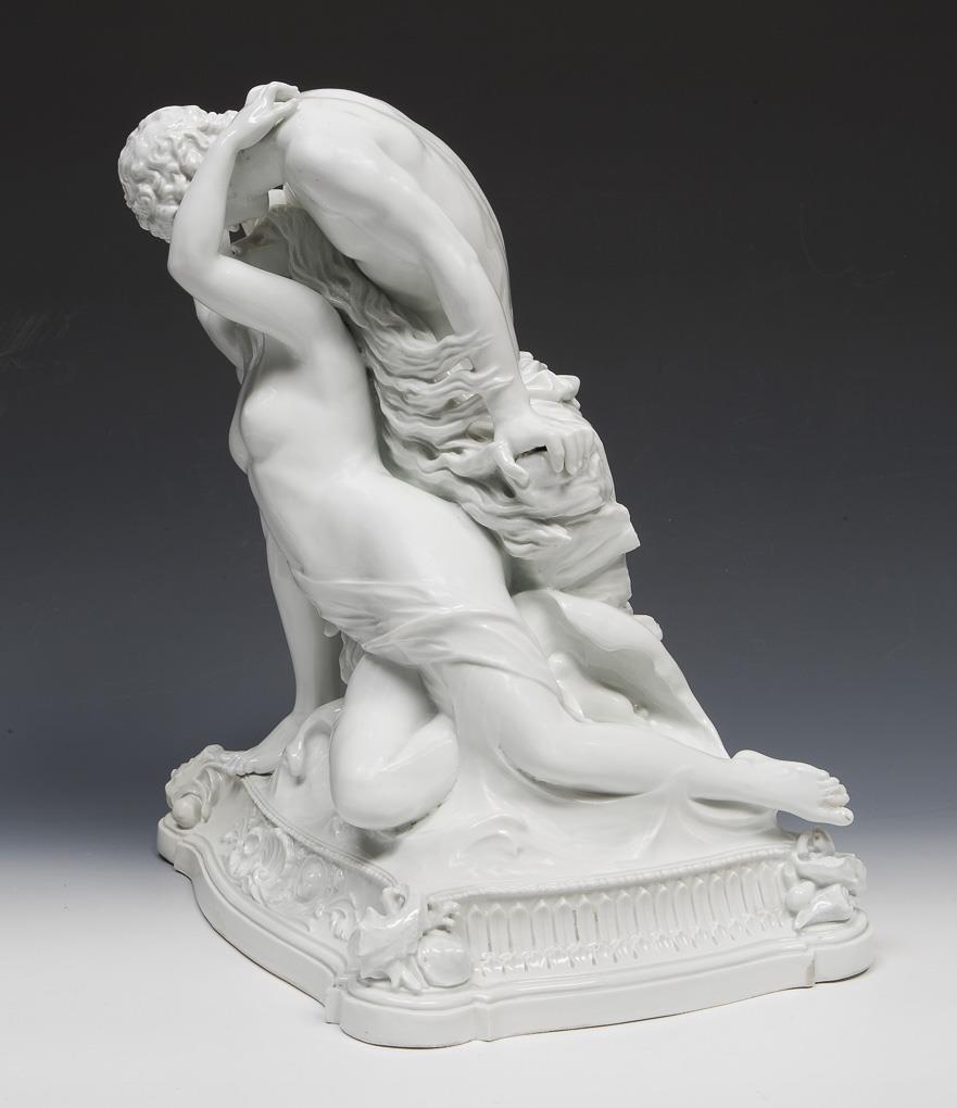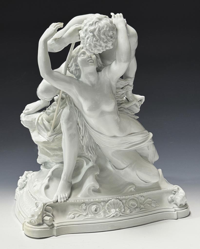 Seltene große Figurengruppe aus dem Besitz von König Friedrich August III.: Fischer und Nixe. Meissen.