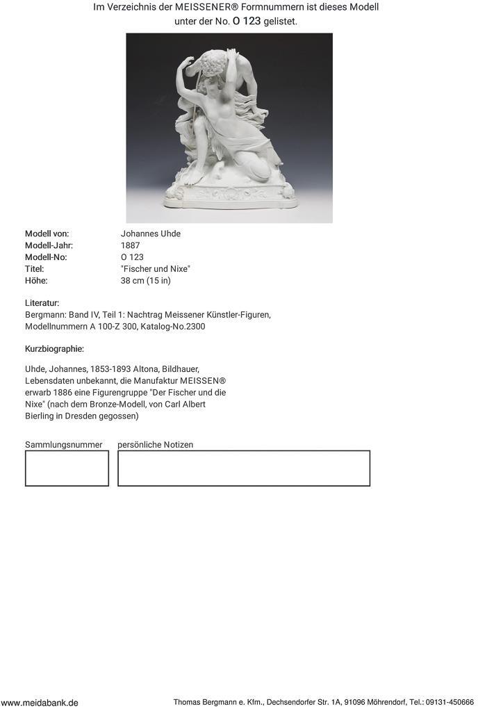 Friedrich August III., 1865 Dresden - 1932 Schloss Sibyllenort, 1905-1918 letzter König von Sachsen. Uhde, Johannes, 1858 Altona - 1893 Altona, Bildhauer, studierte an der Akademie in Dresden, die Manufaktur Meissen erwarb 1886 die Figurengruppe "Fischer und Nixe" nach dem Bronze-Modell, von Carl Albert Bierling in Dresden gegossen * Partnerauktion Bergmann.