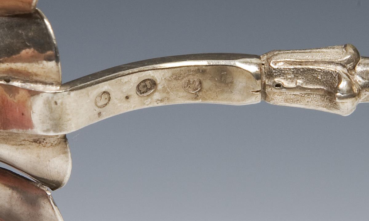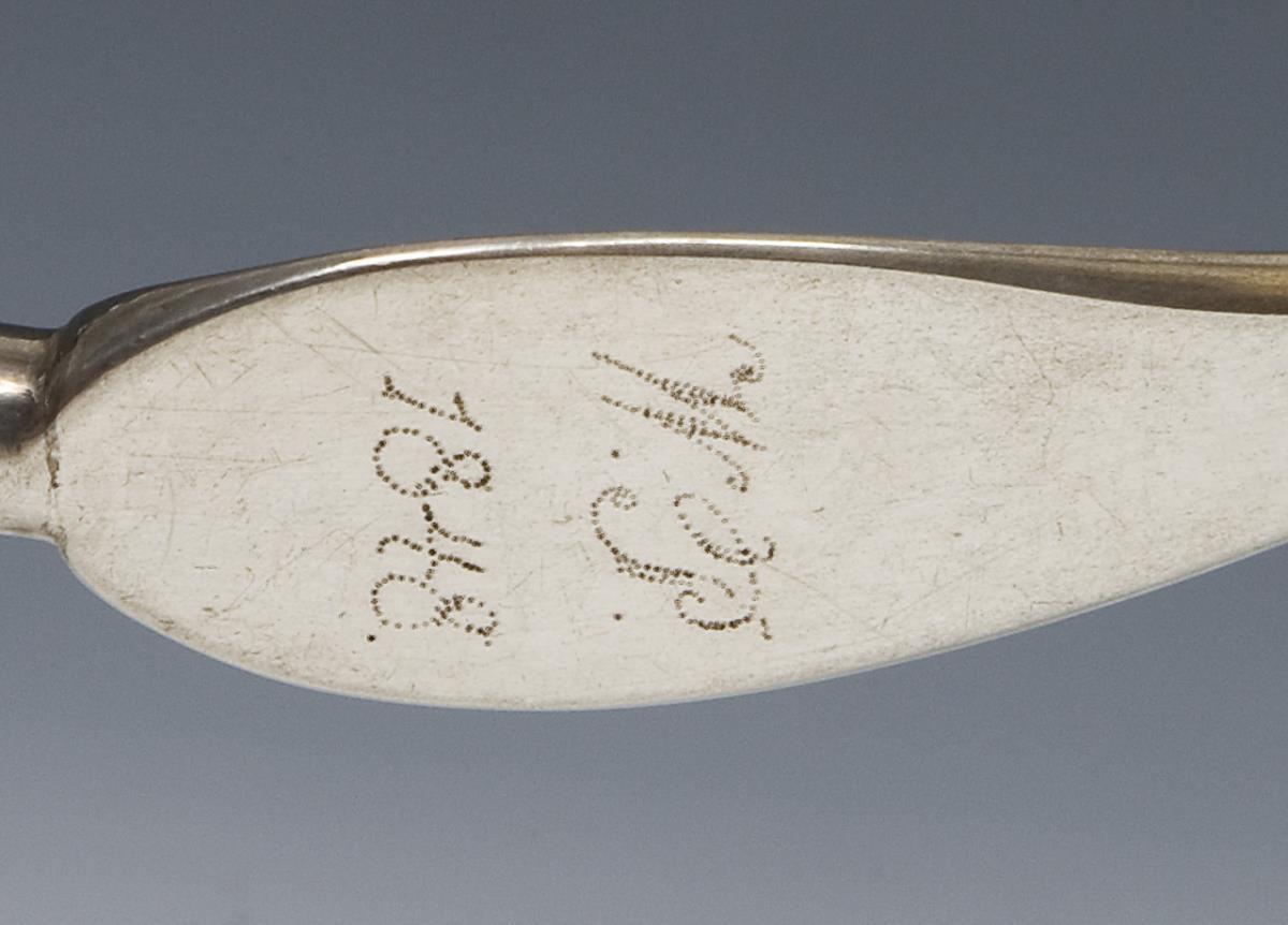 Eine Kelle mit graviertem Monogramm, datiert: 1848, innen vergoldet. Siebkelle mit undeutlicher Stadtmarke. Godronierte Kelle mit Nürnberger Stadtmarke, Meistermarke. Alle Kellen mit Feingehalts-Punze.